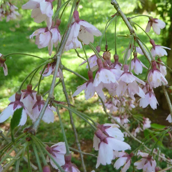 - плакучая форма кроны у сортов – Prunus ‘Kiku Shidare Sakura’ «Кику шидаре сакура», Prunus subhirtella ‘Pendula’ «Пендула»;