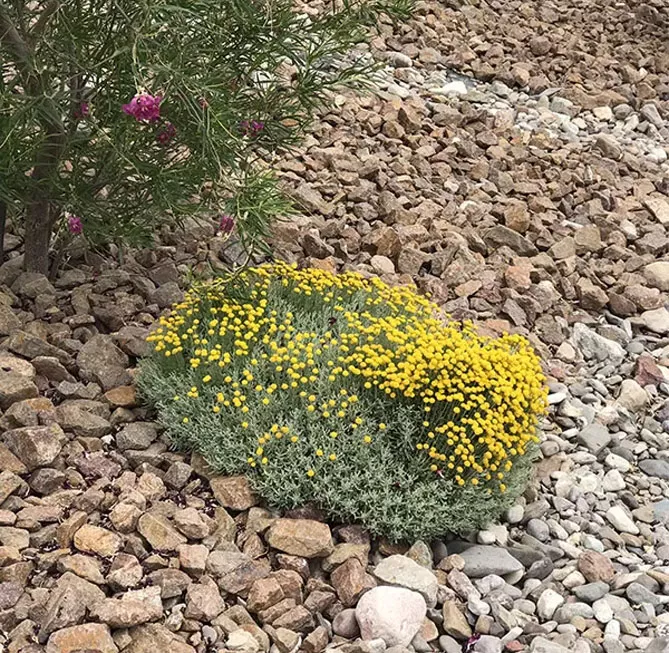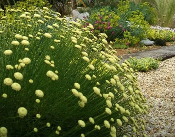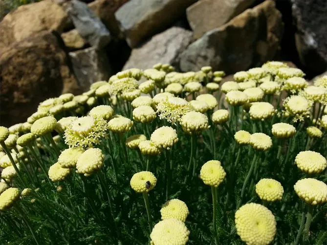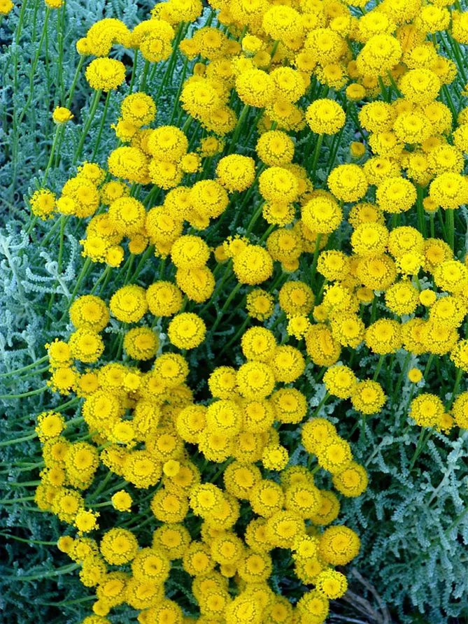 Сантолина – фантастическое растение. Оно приятно пахнет заморскими специями, имеет замысловатые листья и веточки, идеально подходит для засушливых мест, отпугивает насекомых, цветет милыми миниатюрными цветочками, которые очень красиво смотрятся на сером фоне. Красота сантолины заключается в ее цвете, форме веточек и аромате.