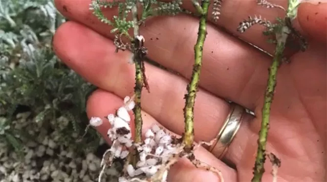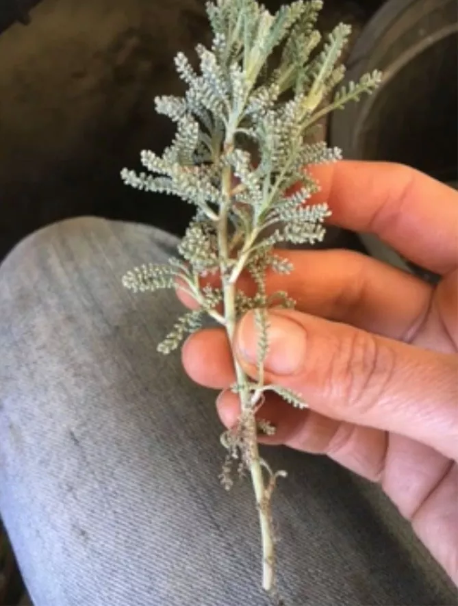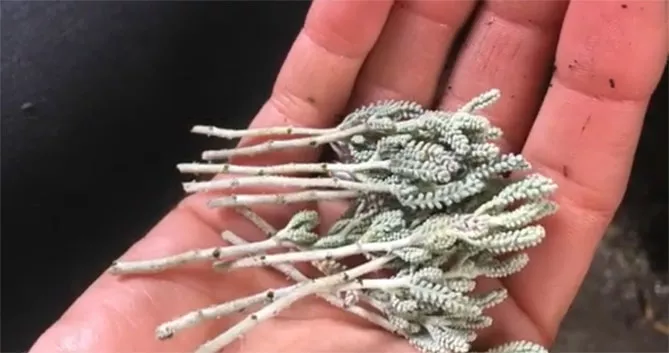- Листья – маленькие, многочисленные, перистые, скрученные, сильно извилистые, ароматические, покрыты мягким серебристо-серым пушком (вблизи листья выглядят как ощетинившиеся и колючие на самом деле они мягкие, нежные на ощупь).