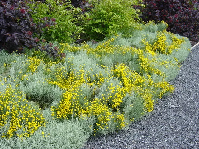 Сантолина – очень изящное декоративное растение, способное найти в саду множество применений. Ее следует сажать вместе с другими солнцелюбивыми видами, не нуждающимися в большом количестве воды. В садах сантолину любят за очень привлекательные серебристые листья, которые служат хорошим фоном для других растений. Они красиво контрастируют с пышной зеленой лужайкой.