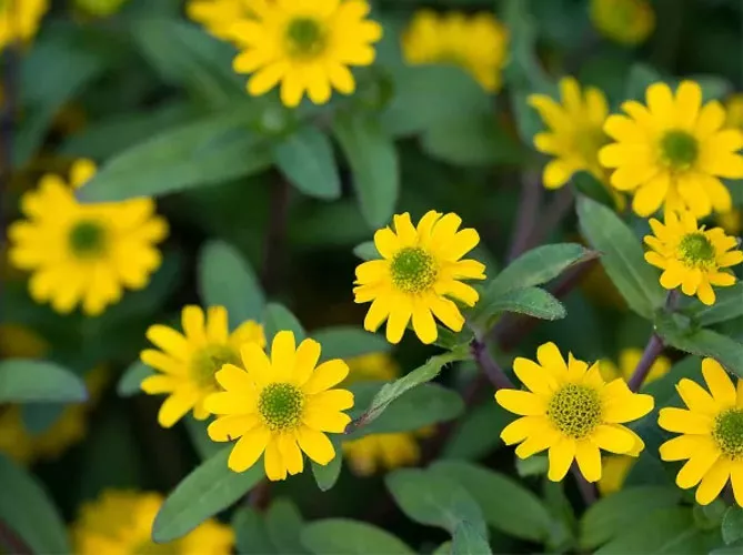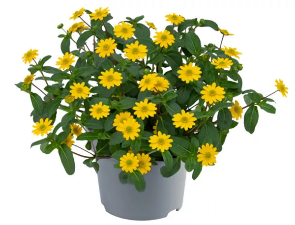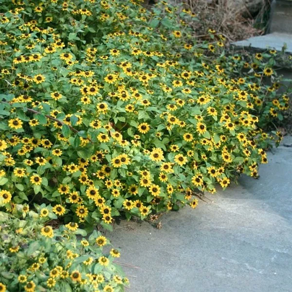 - «Маленькие подсолнухи» – компактный сорт высотой 15 см. Побеги стелющиеся, цветки мелкие, желтые с темным центром. В открытом грунте разрастается в великолепные желтые подушки диаметром 40-50 сантиметров.