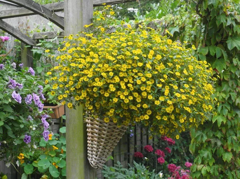 - «Миллион солнц» – ампельный сорт санвиталии. Million Suns размножается семенами, отличается хорошим ветвлением и равномерным ростом. Стебли полусвисающие, цветки маленькие, желтого цвета.