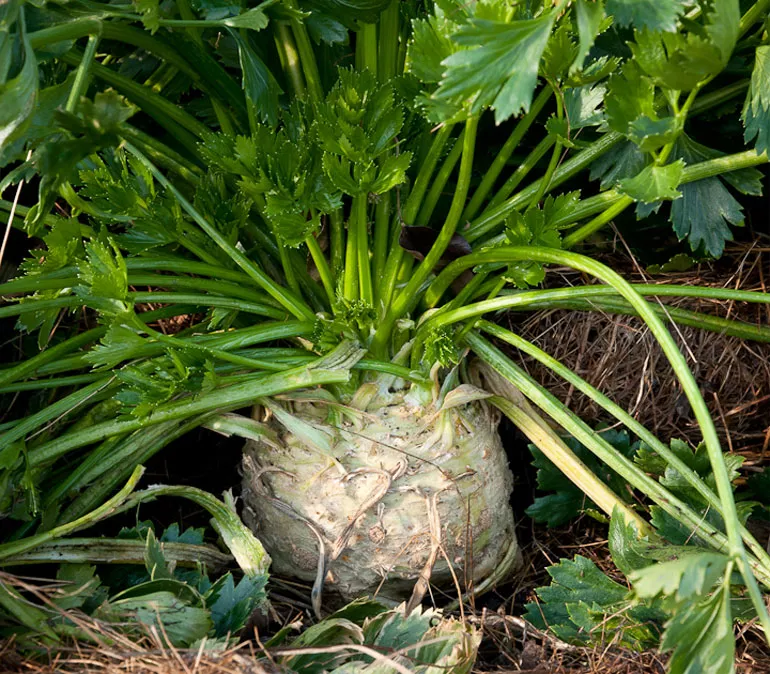 На небольших площадях сельдерей можно легко выкопать, подрывая его вилами.