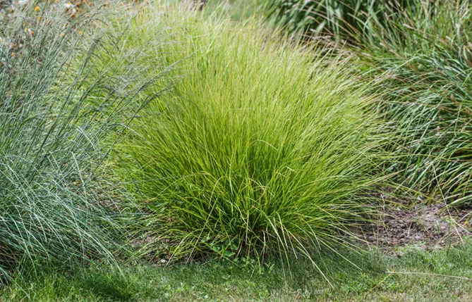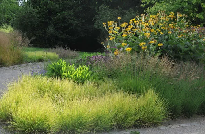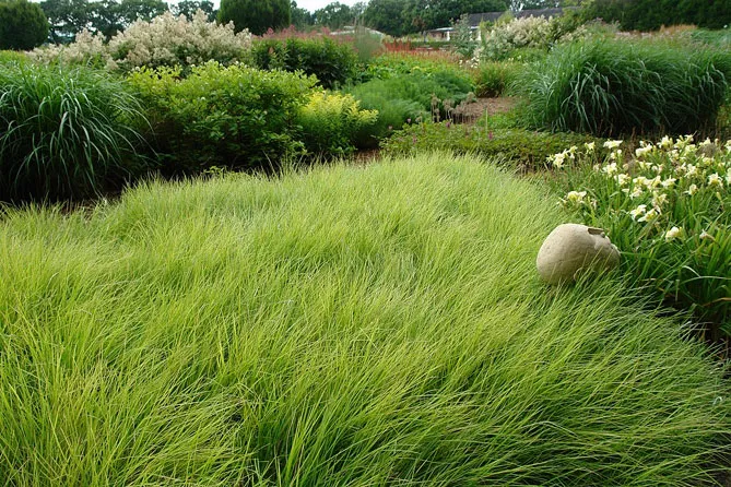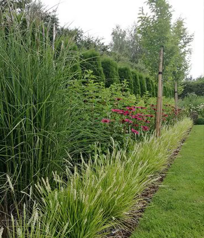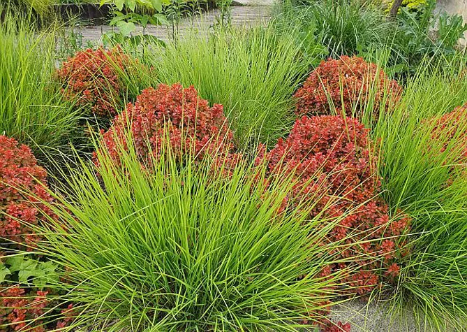 Трава внесет легкость на клумбы с цветками тяжелых многолетников – эхинацеи, восточных маков.
