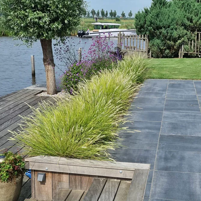 В лаконичном декоре в очень современном стиле сеслерию можно дополнить растениями, популярными в современном ландшафте: