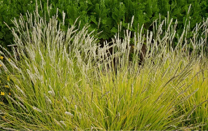 В натуралистическом массиве трава будет хорошо смотреться с другими многолетниками с летним цветением: