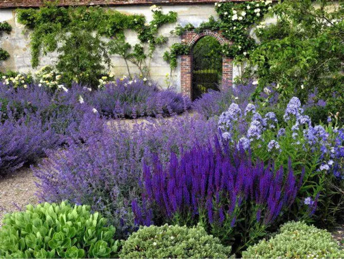 На рубеже мая и июня шалфей цветет, создавая эффектные соцветия, несколько напоминающие люпины или гиацинты. В зависимости от сорта цветы могут быть голубыми, фиолетовыми, розовыми, кирпично-красными или белыми, в начале лета украшая клумбы, рокарии, склоны или холмы в саду.