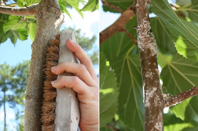 Шелковицу могут поражать несколько болезней, вредителей. Мучнистые червецы (войлочники) могут появиться на коре или под листьями во время жарких влажных весенних дней без особого вреда для дерева. Можно снять их щеткой с жесткой щетиной или опрыскать раствором жидкого хозяйственного мыла, растительного масла и спирта из расчета по 1 чайной ложке на 1 л воды. Повторяйте операцию каждый день в течение 1 недели.