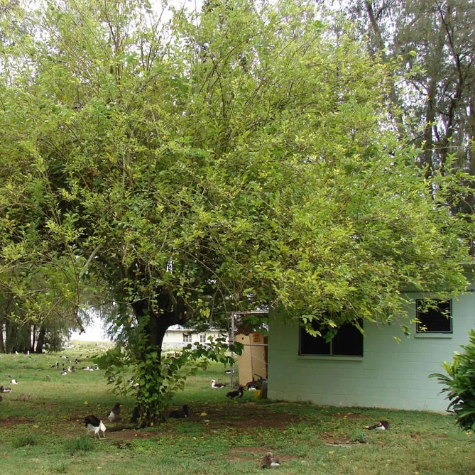 Поставьте под деревом скамейку, чтобы отдыхать в тени, или стол с двумя стульями, чтобы позавтракать летом. Но будьте осторожны! Эти маленькие плоды окрашивают одежду.