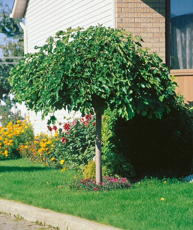 Высота взрослого дерева – 10 м. Есть интересный, низкий сорт (2-5 м) «Пендула» с зонтичной кроной и свисающими побегами.