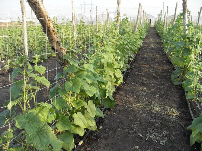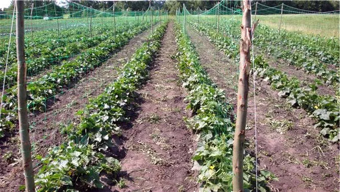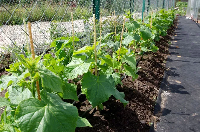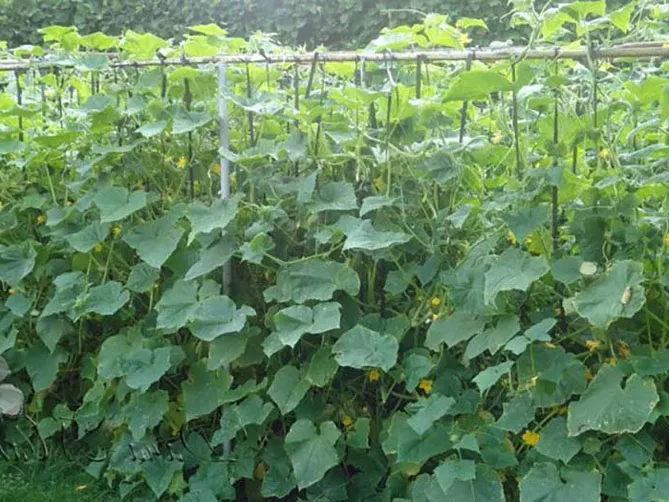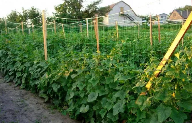 Для формирования кустовых огурцов лучшим вариантом признана сетка. В этом случае кусты получают максимальное количество света и обеспечивается хорошая вентиляция. Опоры следует установить через каждые 2 метра, на них натянуть сетку.