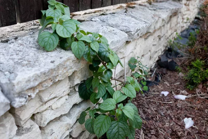Это укореняющаяся лиана с извилистыми ветвями, которая цепляется за опору благодаря воздушным корням, но, в отличие от плюща, ее воздушные корни не повреждают структуру стен. Этой вьющейся медленнорастущей лиане требуется 2-3 года, чтобы хорошо прижиться, на ранних стадиях требуется уход.