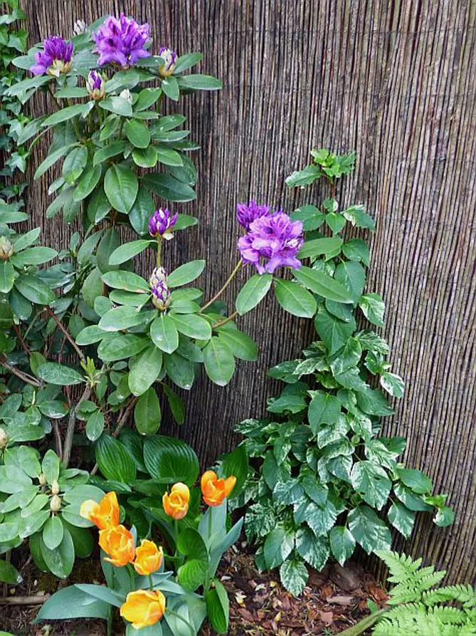 Играйте на контрастах форм и текстур с листвой плюща, некоторые из его видов имеют очень красивую пестроту.