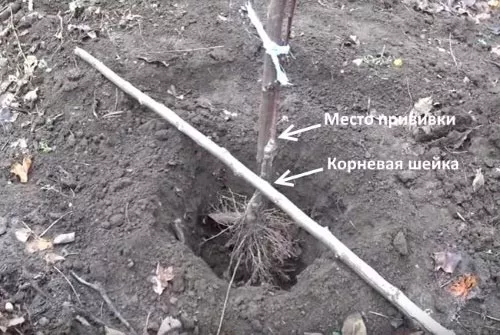 В просторную яму глубиной не менее 80 см, выкопанную заранее, насыпают почву, смешав ее с органикой и минеральными удобрениями. В нее помещают саженец яблони, не заглубляя шейку, а оставив над поверхностью приблизительно на 60–70 мм. Корни прикрывают землей и обильно поливают, присыпают опилками или торфом слоем от 15 до 18 см. Деревце привязывают к колышку.