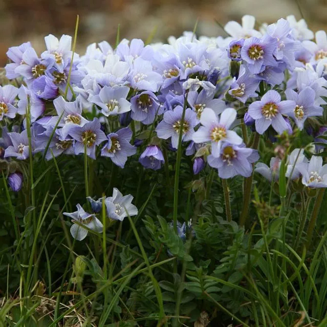 Синюха северная (лат. Polemonium boreale) – вид родом из Северной Америки. Компактный многолетник образует небольшой темно-зеленый куст, из которого выходят прямостоячие стебли с маленькими фиолетово-голубыми цветками, освещенными нежно-желтыми глазками. Высота: 25-30 см. Цветет с июня по август.