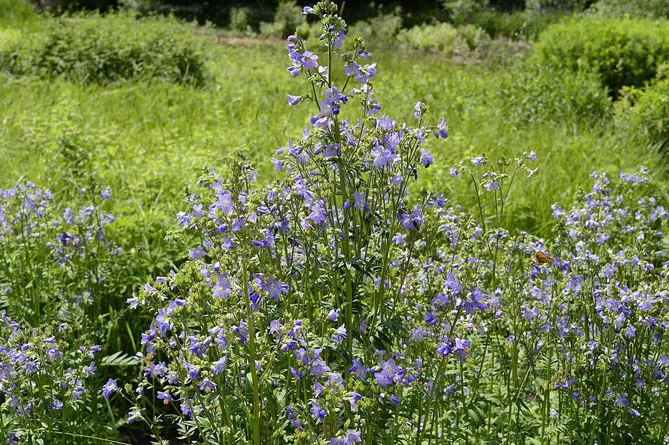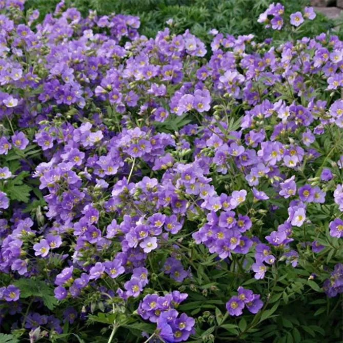 - Синюха ползучая (Polemoniumreptans) Stairway to Heaven – имеет большие бледно-голубые колокольчики.
