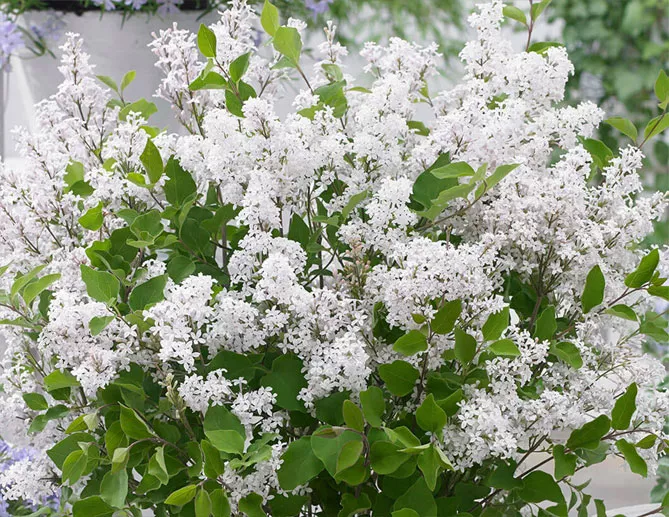 Пудрово-голубые, бледно-розовые или белые цветки сирени раскроются нежным облаком рядом с компактными соцветиями и пышной листвой гортензии, магнолии, каликантуса (чашецветника).