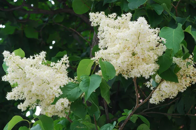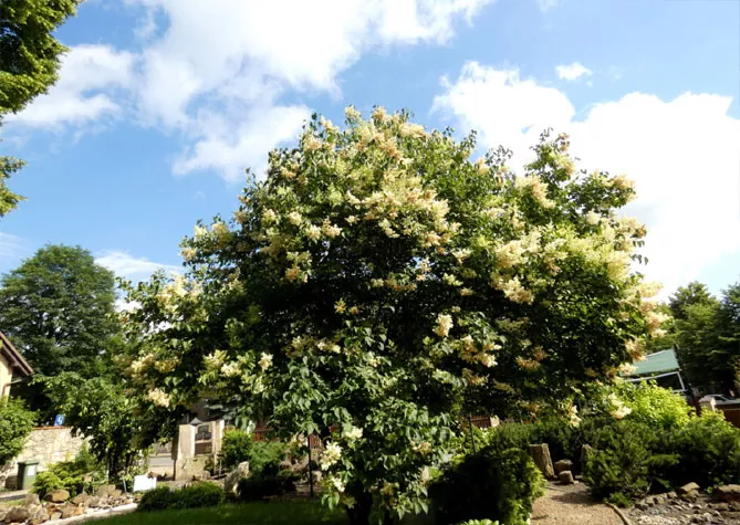 Сирень японская, также называется сетчатая (лат. Syringa reticulata) в зависимости от формировки может иметь форму высокого кустарника с прямыми ветвями или небольшого деревца. Вырастает до 5 м. Цветет только в конце июня – июле белыми или кремовыми цветками. Привлекает пчелиные рои, цветы медоносные — производят большое количество нектара.