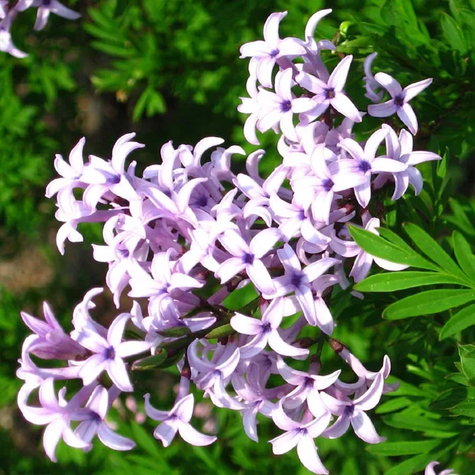 Редкий вид Сирень перистолистная (лат. Syringa pinnatifolia) достигает 3 метров. Период цветения кустарника: апрель – июнь. Куст с перистыми листьями демонстрирует превосходный контраст между светлым тоном цветов и темным цветом листвы.