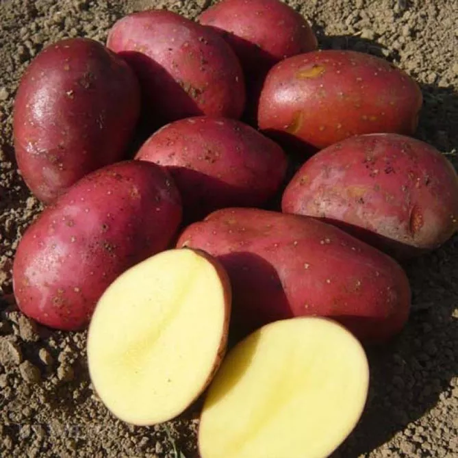 - Отличный товарный вид клубней (правильная овальная форма, мелкие глазки, красивая красная кожура).