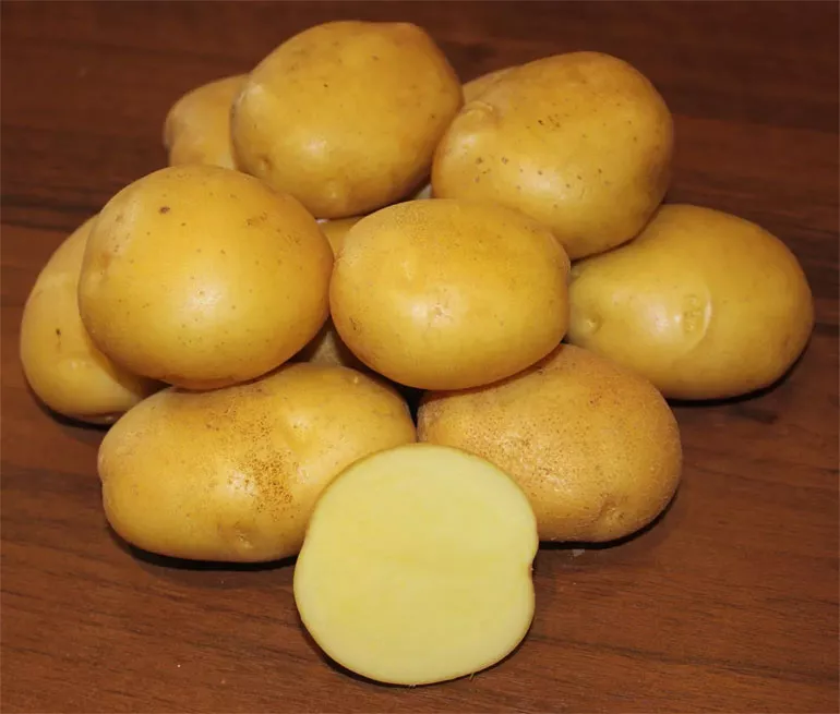 - Клубни обычно средние и крупные по размеру, выровненные по форме, легко чистятся, обладают высокой товарностью (88-98%).