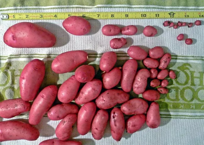 - Картофель нужно рассортировать по размеру. Вес клубней подбирают примерно одного размера – 50-80 граммов.
