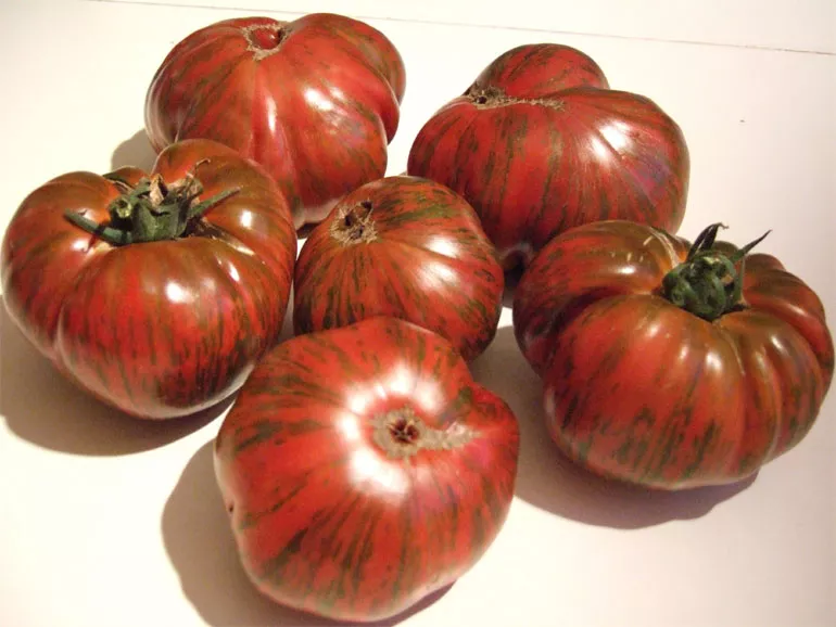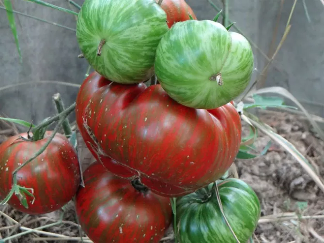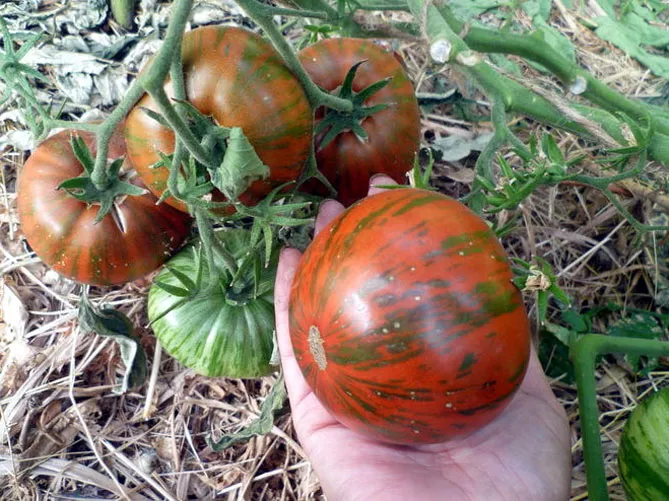 Отличный сорт, красивые полосатые томаты шоколадного цвета в зеленую полосочку, крупные (250-300 г)! Вкус – сладкий, сочный, очень понравился! Детерминант. У меня получился поздний. Мой фаворит!