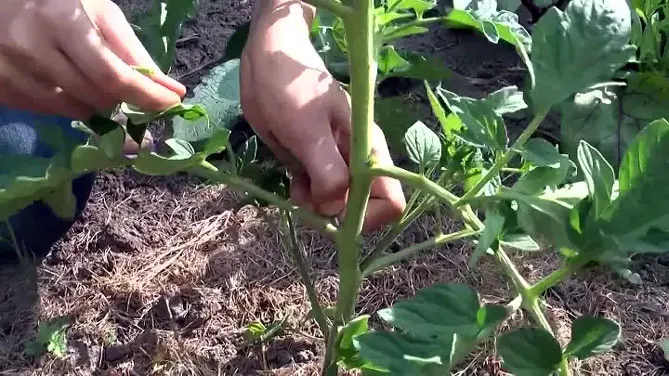При формировании в 2 стебля на кустах оставляют 1 хорошо развитый пасынок. В дальнейшем на нем необходимо удалять все боковые побеги. Оставленный пасынок аналогично главному стеблю подвязывается к шпалере.