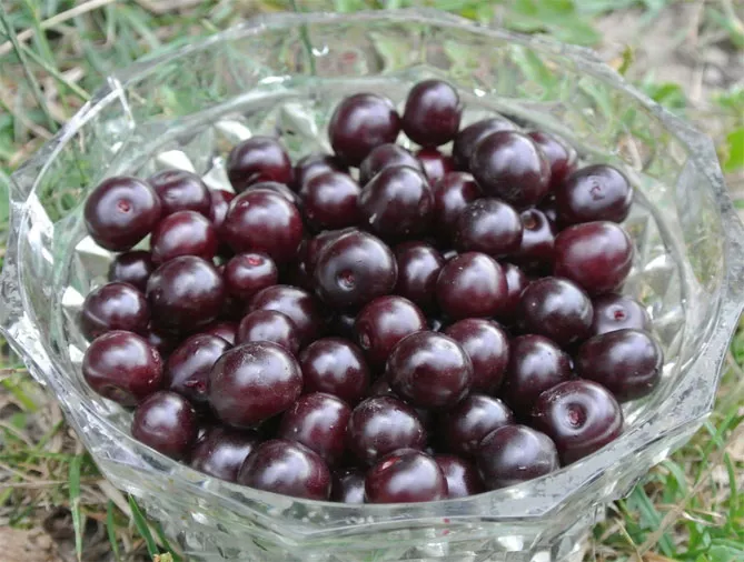 Плоды небольшие, массой максимум 3,4 г (обычно 2,5-3 г), с формой, определяемой как плоскоокруглая или реповидная. У плодов скругленная верхняя часть, маленькая воронка, маловыразительный, немного вдавленный шов. Наружная оболочка ягоды бордового, практически черного цвета, усеяна явственно различимыми точками. Внутренняя часть плотная, мясистая, с насыщенно-красным соком.