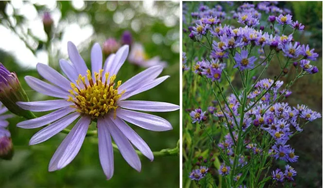 Aster laevis – многолетняя астра, образует множество соцветий с широкими листьями и большими фиолетово-голубыми цветами. Устойчива к мучнистой росе.