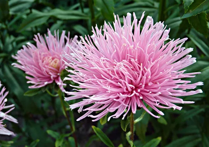 Callistephus chinensis – единственные однолетние или двухлетние астры. В зависимости от сорта кусты достигают высоты 15- 10 сантиметров. Ботанически они принадлежат к разным семействам растений. Цветок махровый, цветет куст очень обильно. Данный вид включает растение Астра помпонная, отличающееся густым скоплением лепестков. Популярна однолетняя Астра Пиноккио.