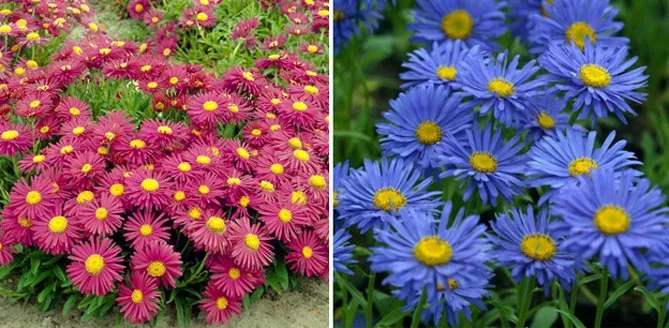 Многолетние астры Aster bessarabicus также называют ложно итальянскими. Цветки верескового цвета с желто-коричневой серединкой. Высота куста – до 70 сантиметров.