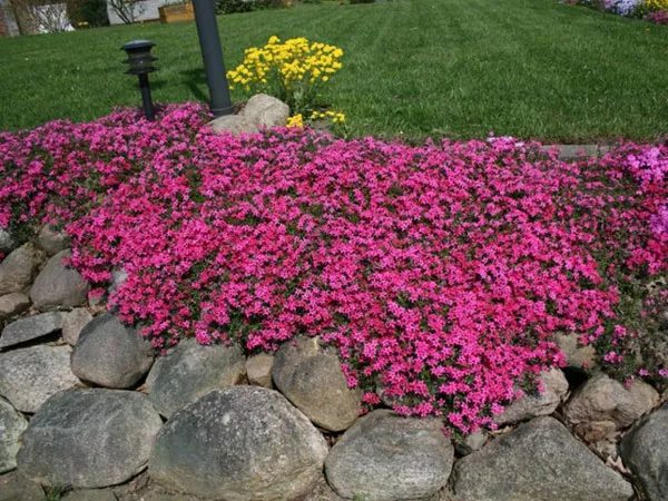 - «Алое пламя» Scarlet Flame – с весны до начала лета превращаются в цветущие розово-красные ковры, живописно струящиеся по клумбам. Цветки мелкие, с темным глазком, почти полностью закрывают темно-зеленые пучки листьев при распускании. Растение образует низкие коврики, отлично подходит для бордюров, клумб, дорожек, альпинариев. После цветения украшает сад плотным ковром зеленых побегов с короткими узкими игольчатыми листьями. Вырастает до 10-15 см, 60 см в ширину.