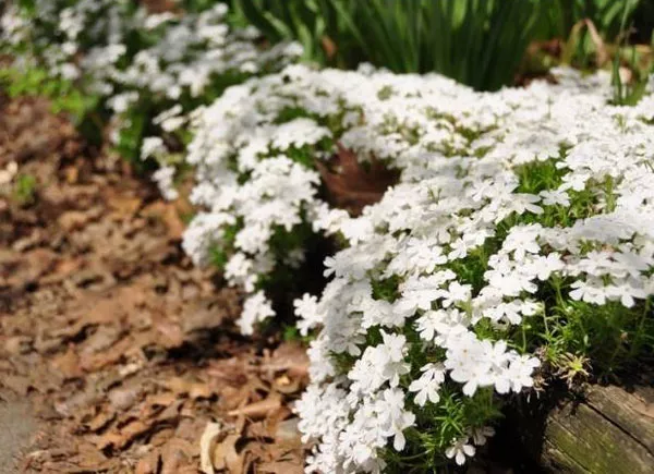 - Замечательный низкорослый сорт белых флоксов, отличающийся ранним обильным цветением и высокой устойчивостью к болезням «Минни перл» Minnie Pearl. Стебли растения достигают максимум длины 30-45 см. Такой низкий рост среди метельчатых разновидностей флоксов встречается редко. Создает густые скопления приподнятых побегов с ланцетными светло-зелеными листьями. С июня по август верхушки стеблей украшают ослепительные белоснежные соцветия.