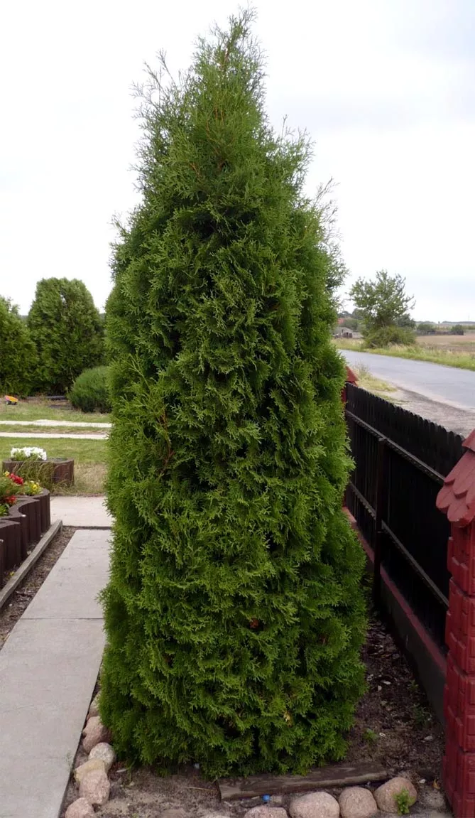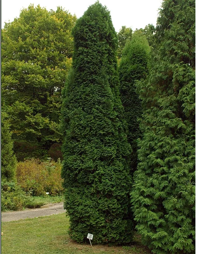 Самый старый из сортов колоновидного вида, описанный в 1865 году – туя Фастигиата. Раньше только эта колоновидная туя использовалась для живых изгородей, потом заменялась новыми сортами, главным образом сортом Смарагд.