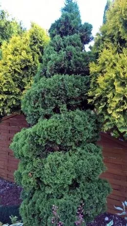 Это плотный, сильно растущий сорт, имеющий колоновидную или узкую коническую форму. Из горизонтально выступающих главных побегов возникают короткие, скрученные, причудливые ветви с ярко-блестящими темно-зелеными чешуйками. Дерево быстро растет, достигает высоты 5-8 м. Любит солнечные позиции с плодородной и влажной почвой. Сорт Колумна – вечнозеленое, морозоустойчивое растение.