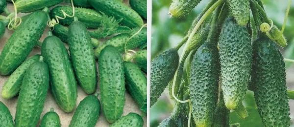 - Сорт салатных огурцов. Имеют плотную и хрустящую структуру. Подходят для потребления в сыром виде. При засолке плоды становятся мягкими с горьким привкусом.