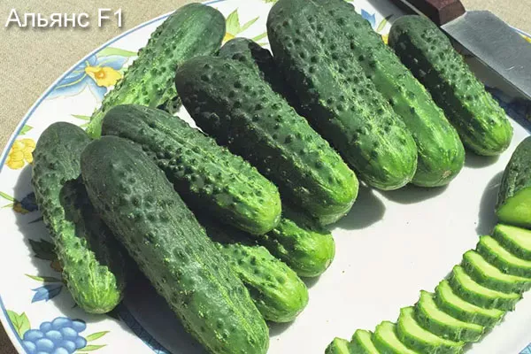 - Альянс. Относятся к кустовым огурцам, с правильной формой, на кожице которой встречаются белые проблески. Сорт относится к универсальным огурцам, т.к. подходит, как для маринада, так и приготовления пищи в свежем виде. Противостоят инфекционным заболеваниям.