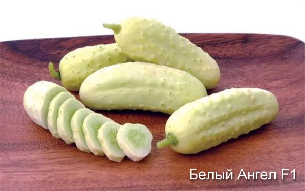 - Белый ангел F1. Является относительно новым сортом. Огурцы высаживают в разных регионах. Плоды имеют белый цвет и могут достигать длины до 10 см. Сорт применяется, как для использования в сыром виде, так и для засолки.