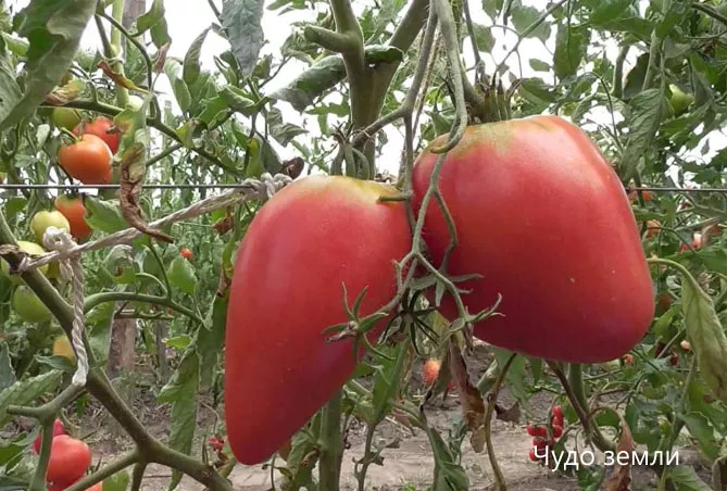 Растение образует помидоры массой 0,25 кг за 3,5-4 месяца. Цвет розовый. Используются для приготовления горячих блюд, засолки, салатов. Пригодны для выращивания в коммерческих целях. Куст не ограничен в росте.