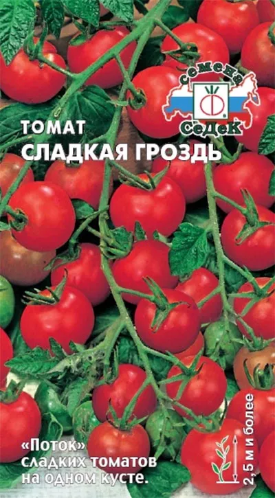 Ранняя разновидность – 3-3,5 месяцев. Гибрид. Высота куста – 2 м. Мелкие томаты (15-20 г), собранные в гроздь, имеют очень привлекательный вид. На вкус сладкие.
