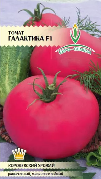 «Галактика» имеет предел роста стебля. Боковых побегов мало. Томаты красивой округлённой формы, массой 135 г. Кожура насыщенно-красная. Урожай собирают на 4-й месяц.