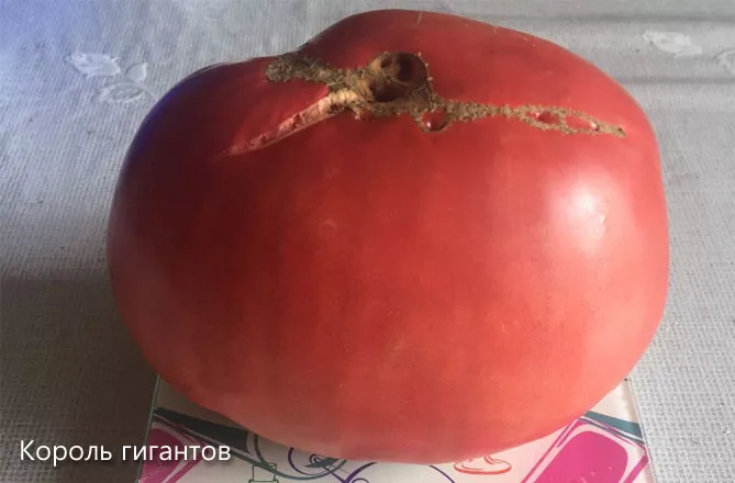 Высокие кусты вступают в плодоношение на 4 месяц после посева. Помидоры большие – до 0,5 кг. Мякоть сладкая. Кожица красная. «Король гигантов» можно выращивать без укрытия.