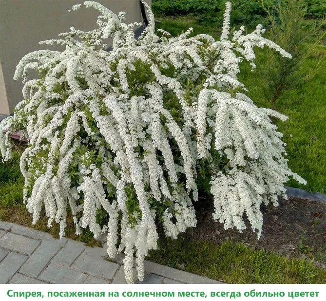 Уход за спиреей вангутта не сложный, посадку можно проводить на разных почвах, но лучше растет на плодородных. Более пышно цветет в солнечных местах.