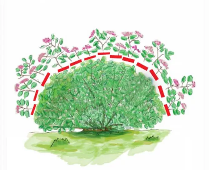 После цветения нужно удалить отцветшие соцветия вместе с некоторыми побегами, расположенными под ними (выполнить прореживание). Обрезают кустарник, образуя полушарие.