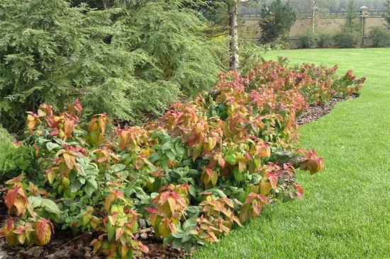 Даже зимой густые кусты являются украшением сада. Особенно эффектно смотрятся филигранные красноватые веточки, покрытые кристаллами инея или тонким слоем снега. Весной нежные листья приобретают красноватый оттенок, который со временем приобретает правильный зеленый или желтый цвет.