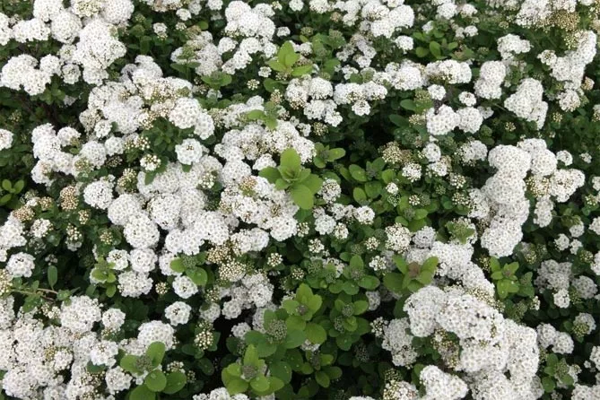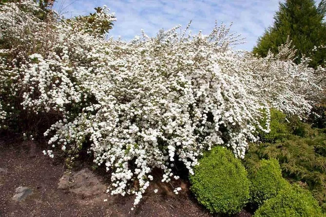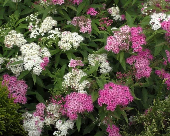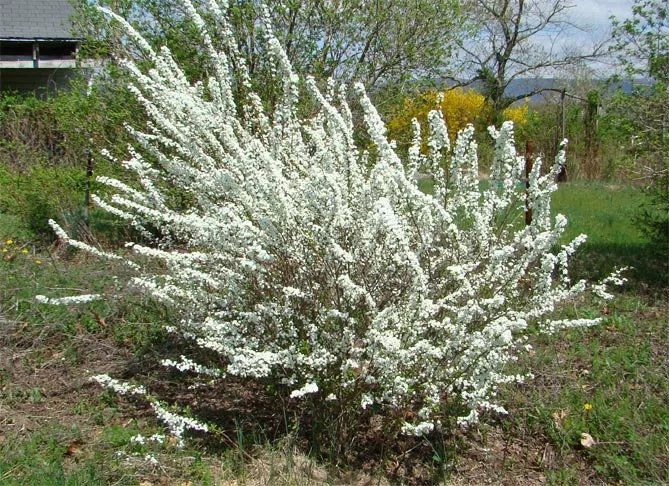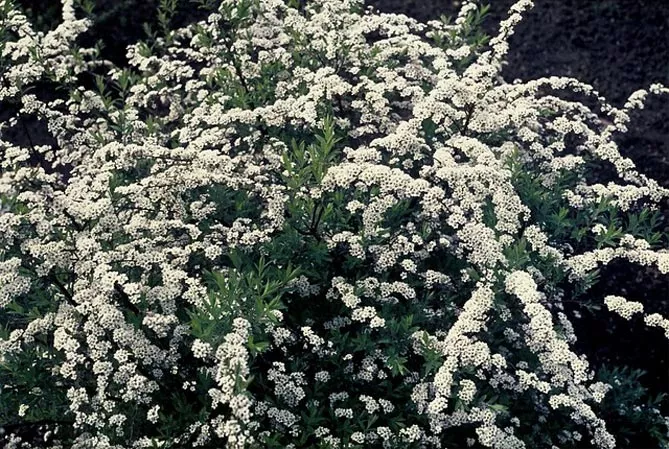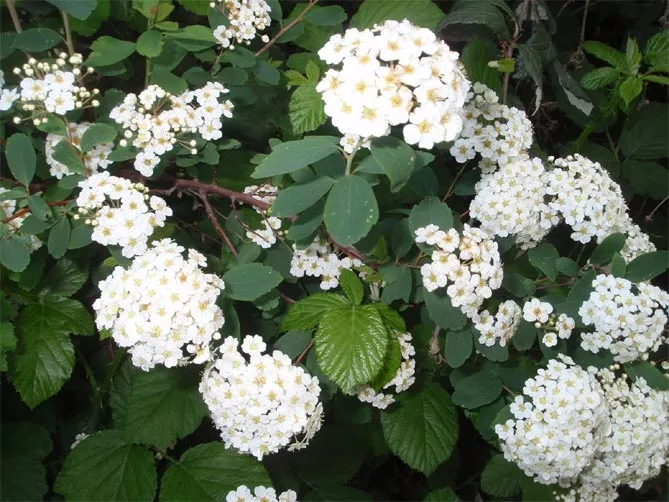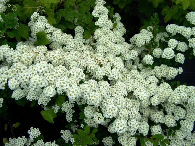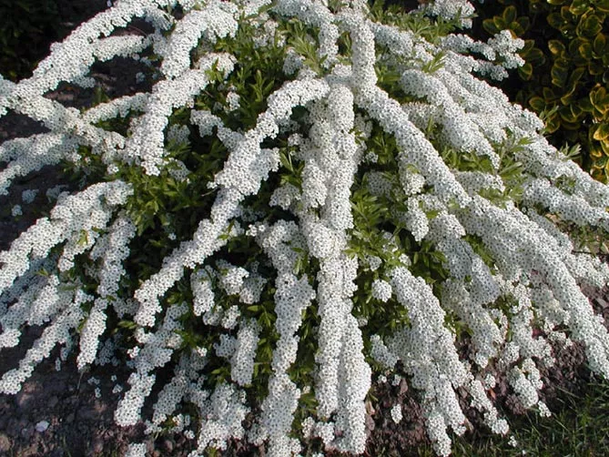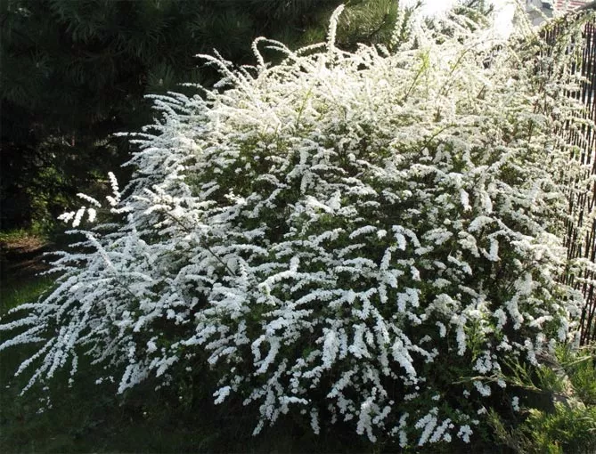 Spiraea × vanhouttei – спирея Вангутта образует великолепные кусты, достигающие 2,5 метров. Цветет в мае-июне. Цветы сохраняются в течение относительно долгого времени на кусте. Устойчив к морозу.
