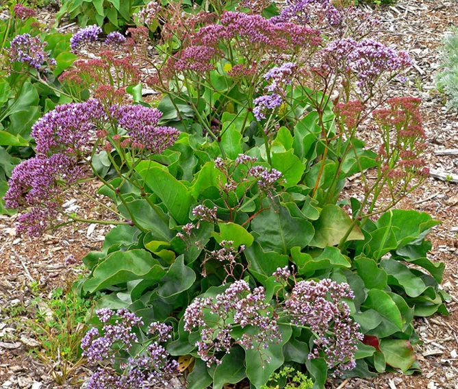 Кермек широколистный (Limonium latifolium) – наименее популярный вид, также культивируемый как многолетнее растение. Цветки очень мелкие, обычно розово-пурпурного цвета, собраны в не слишком густые метельчатые соцветия на верхушке ветвистого восходящего побега (высотой 60 см). Цветки кермека широколистного больше ассоциируются с цветками гипсофилы, являются очень красивым дополнением к сухим букетам и свежим цветочным композициям. Цветы расцветают с июня и цветут до поздней осени. Вид относительно устойчив к низким температурам.