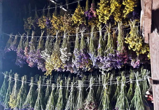 Лучше всего сушить статице, завязанную рыхлыми пучками, вниз цветочками. Собранные растения связывают неплотными гроздьями и сушат, перевернутыми в подвешенном виде, в просторном, затененном месте.