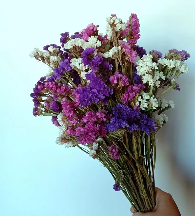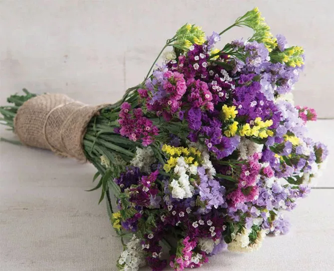 Цветы статицы отлично сохнут, их цвет остается неизменным в течение многих месяцев или даже лет, поэтому они являются очень желанным элементом многих сухих и осенних букетов.